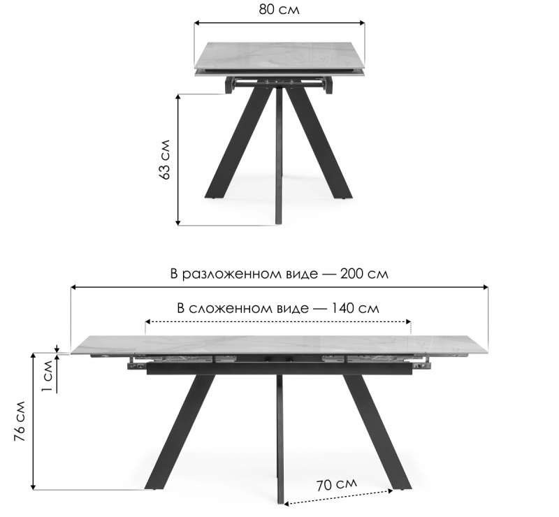 Керамический стол Невис 140(200)х80х76 creto statuario cara polished / черный (80x76).
