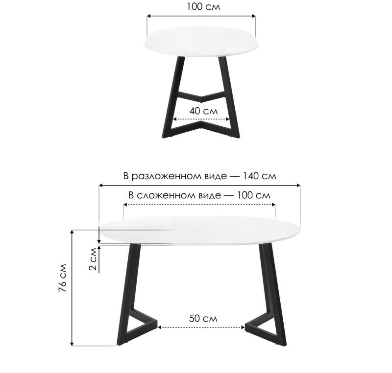 Длина стола в разложенном виде: 140 см.