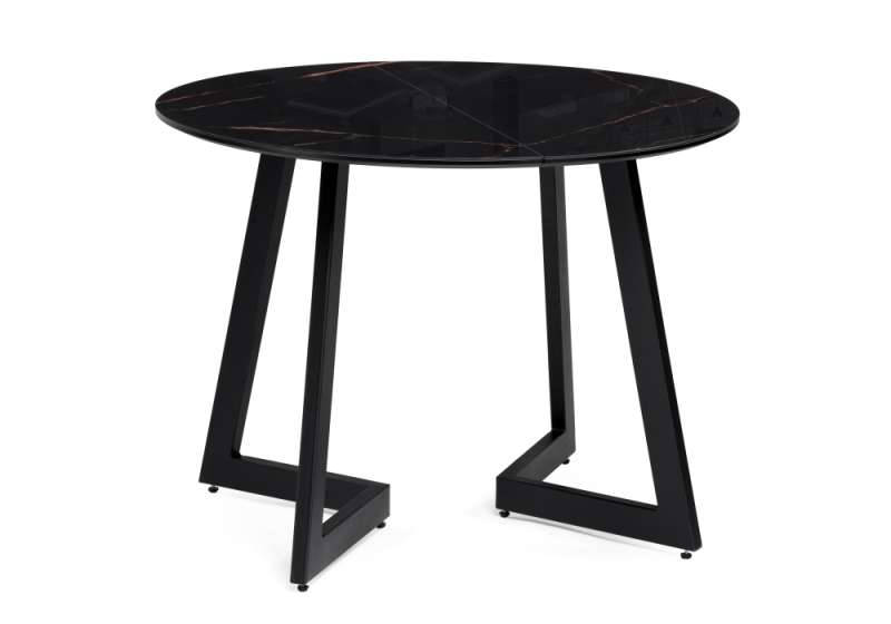 Стол стеклянный Алингсос 100(140)х100х76 обсидиан / черный (100x76).