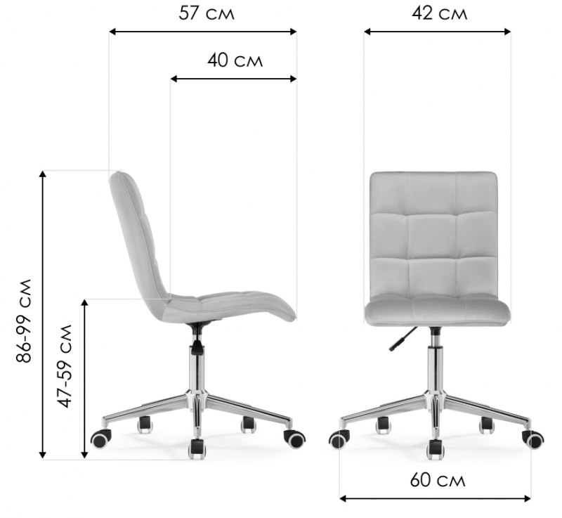Диаметр крестовины: 60 см. Высота спинки: 44 см.